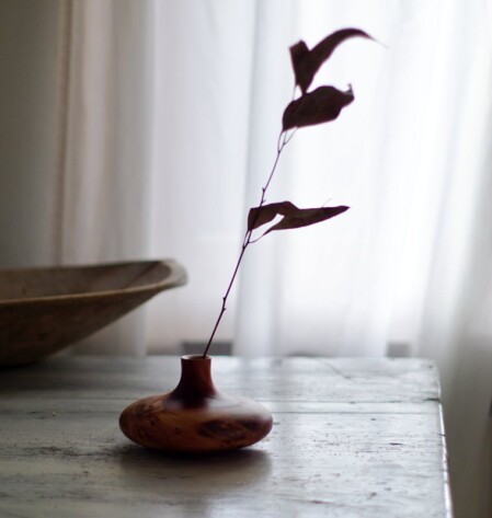 Natürliche Unregelmäßigkeiten im Holz verleihen der Arbeit Charakter. Sie werden beim Drechseln integriert, nicht verborgen.